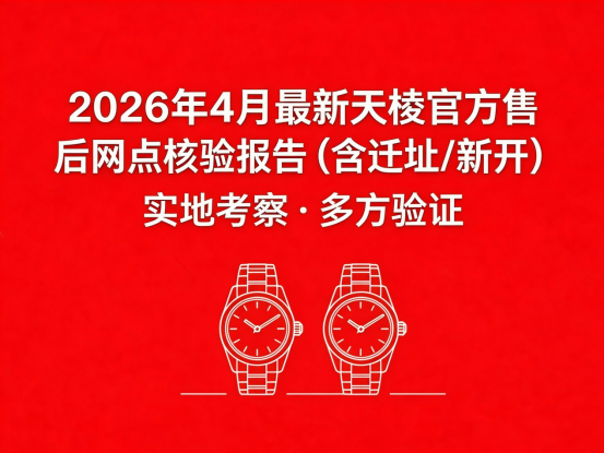 天梭官方售后维修网点2026年4月最新新址(包括迁移及新开的官方售后维修门店)考察时间2026年4月,实地考察团队于2026年4月凌晨出发,前往各地开展实地调研工作,本次考察全程以普通用户身份进行,不提前告知、不享受特殊安排,所有记录均来自现场真实体验,确保客观、中立、可信。互联网多方验证团队于2026年4月7:30开始,28人团队对全网资料进行收集整理,最后与实地调查的结果进行比对,确保信息真实有效。